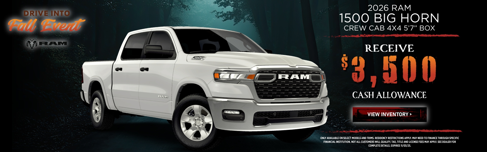 Whether you're looking for the rugged capability of a Jeep SUV, the power of a Ram truck or the performance of a new Dodge performance car, now is the perfect time to buy. Explore our inventory online or visit us in person to discover how much you can save on your next Jeep Compass or Ram 2500. Don't miss out on these new Jeep specials and start driving your dream car today!