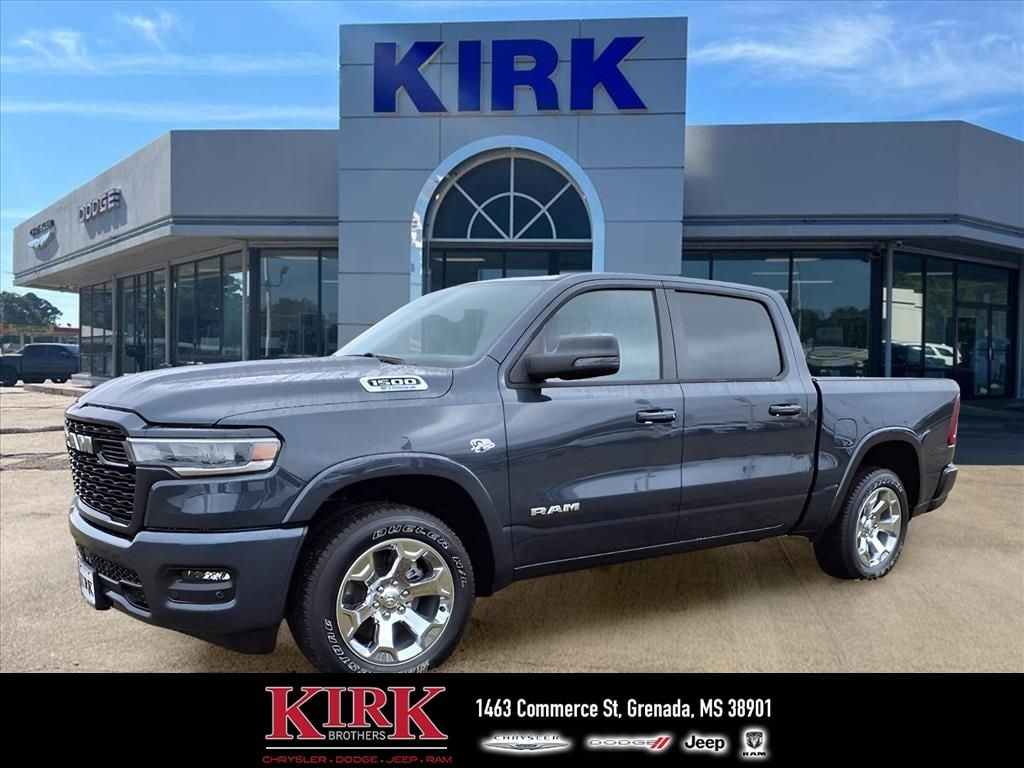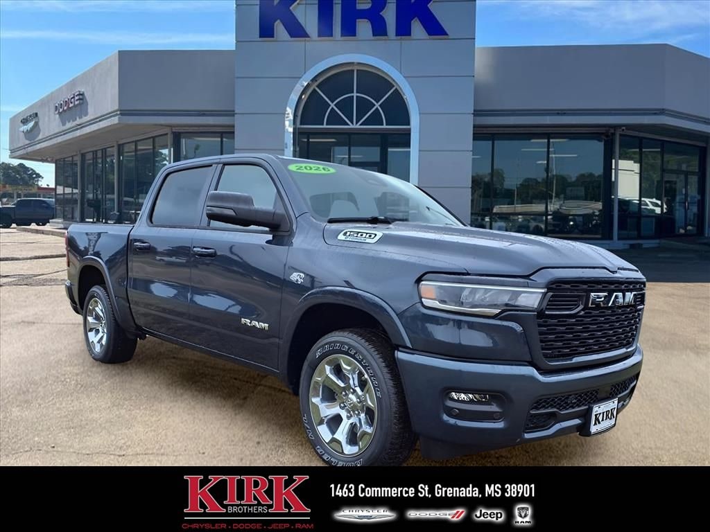 Discover the 2026 Ram 1500 Big Horn 4WD with a powerful 5.7L V8â"now available in Grenada, MS at the best price. This rugged pickup delivers commanding performance and confident handling whether you're towing, hauling, or navigating Mississippi roads. The Big Horn combines capability with modern convenience, featuring Adaptive Cruise Control for relaxed highway driving and Forward Collision Warning to help keep you and your passengers safe. Stay connected on the go with Android Auto and Apple CarPlay integration, making navigation, music and calls effortless. Remote Start adds everyday comfort, warming or cooling the cabin before you step inside. Built to work hard and live comfortably, the 2026 Ram 1500 Big Horn comes with sophisticated interior appointments and a durable exterior designed for real-world use. Located in Grenada, MS, this Ram 1500 Big Horn 4WD with a V8, 5.7L gasoline engine is priced to move â" the best deal in the area. Don't miss your chance to own a capable, feature-rich pickup that blends performance, safety and technology. Contact us today to schedule a test drive or to get more information on financing options.