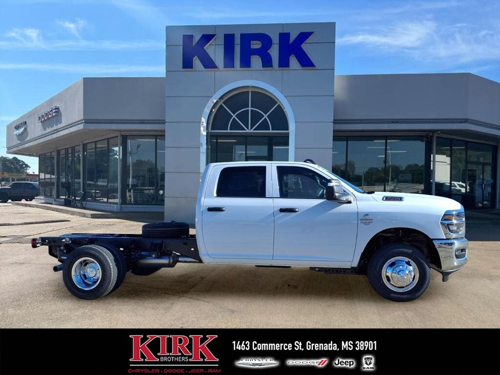 2026 Ram 3500 Chassis Tradesman 4WD Dually â" located in Grenada, MS â" built for demanding work and heavy towing. Powered by a proven 6-cylinder 6.7L diesel engine, this chassis cab delivers exceptional torque, durability, and fuel efficiency for commercial and fleet applications. Dual rear wheels provide enhanced stability and payload capacity, while four-wheel drive ensures traction in mud, snow, and rough jobsite conditions. Inside, the Tradesman is equipped with modern connectivity and safety technology to keep drivers productive and protected. Apple CarPlay and Android Auto integrate smartphones for seamless navigation, hands-free calling, and media control. Hands-free Bluetooth supports safer communication on the road. Advanced driver aids include Forward Collision Warning and Adaptive Cruise Control to reduce fatigue on long hauls and help prevent incidents. This 2026 Ram 3500 combines rugged capability with practical features tailored to contractors, landscapers, and upfitters. The chassis cab platform allows customization with service bodies, flatbeds, or specialized equipment to match your business needs. Whether you're towing heavy trailers or hauling large payloads, the robust 6.7L diesel and DRW configuration make this truck a reliable workhorse. Located in Grenada, MS, this Ram 3500 is competitively priced and advertised as the best price in the area. Contact us to schedule a test drive, review financing options, or discuss upfit possibilities for your specific application.