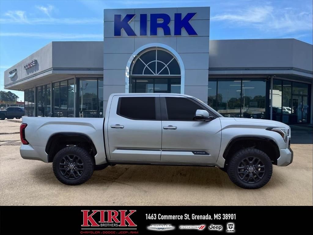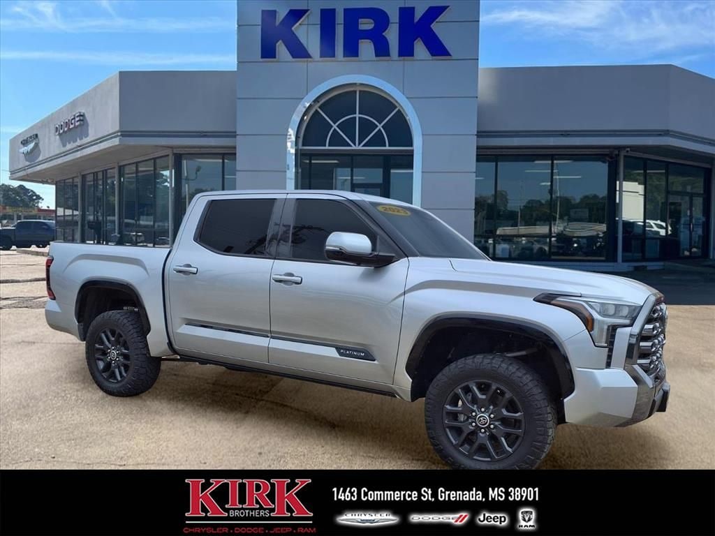 2023 Toyota Tundra Platinum â" 4WD, V6 3.5L, 28,770 miles â" Best Price in Grenada, MS Looking for a premium pickup with low mileage and exceptional value? This 2023 Toyota Tundra Platinum in Grenada, MS delivers rugged capability and refined comfort. Powered by a V6 3.5L gasoline engine with 4WD, this Toyota Tundra is built for towing, hauling, and confident driving in any condition. With just 28,770 miles, it offers years of reliable service at a fraction of the new-vehicle price. Premium features include leather seats for superior comfort, an integrated navigation system for effortless trips, and a heated steering wheel for added winter convenience. Advanced safety and convenience options such as cross-traffic alert increase driver awareness in parking and busy streets. This truck also comes with an AutoCheck 1-Owner report, confirming careful ownership history and added peace of mind. Priced to sell, this Toyota Tundra Platinum represents the best price available in Grenada, MS for a low-mileage, feature-packed pickup. Whether you need a capable work truck or a comfortable weekend vehicle, this Toyota Tundra balances power, technology, and luxury. Contact us to schedule a test drive and experience this exceptional value in personâ"don't miss this opportunity to secure a top-tier Toyota Tundra at the best price.